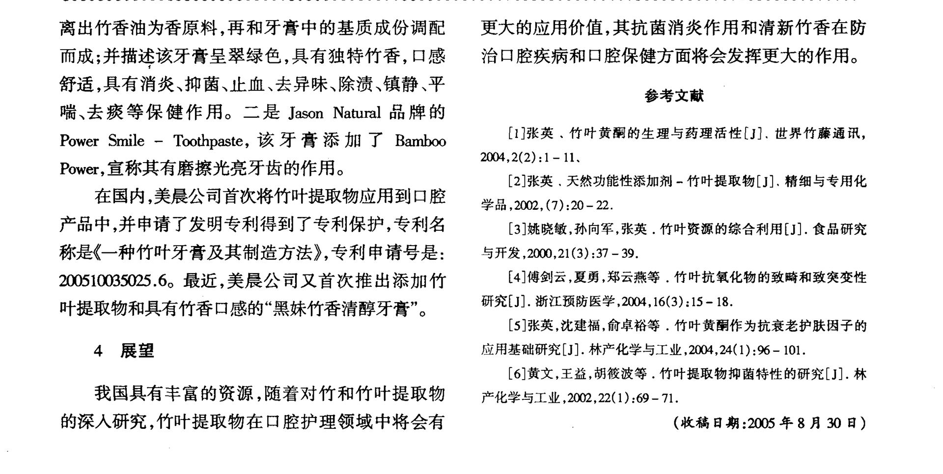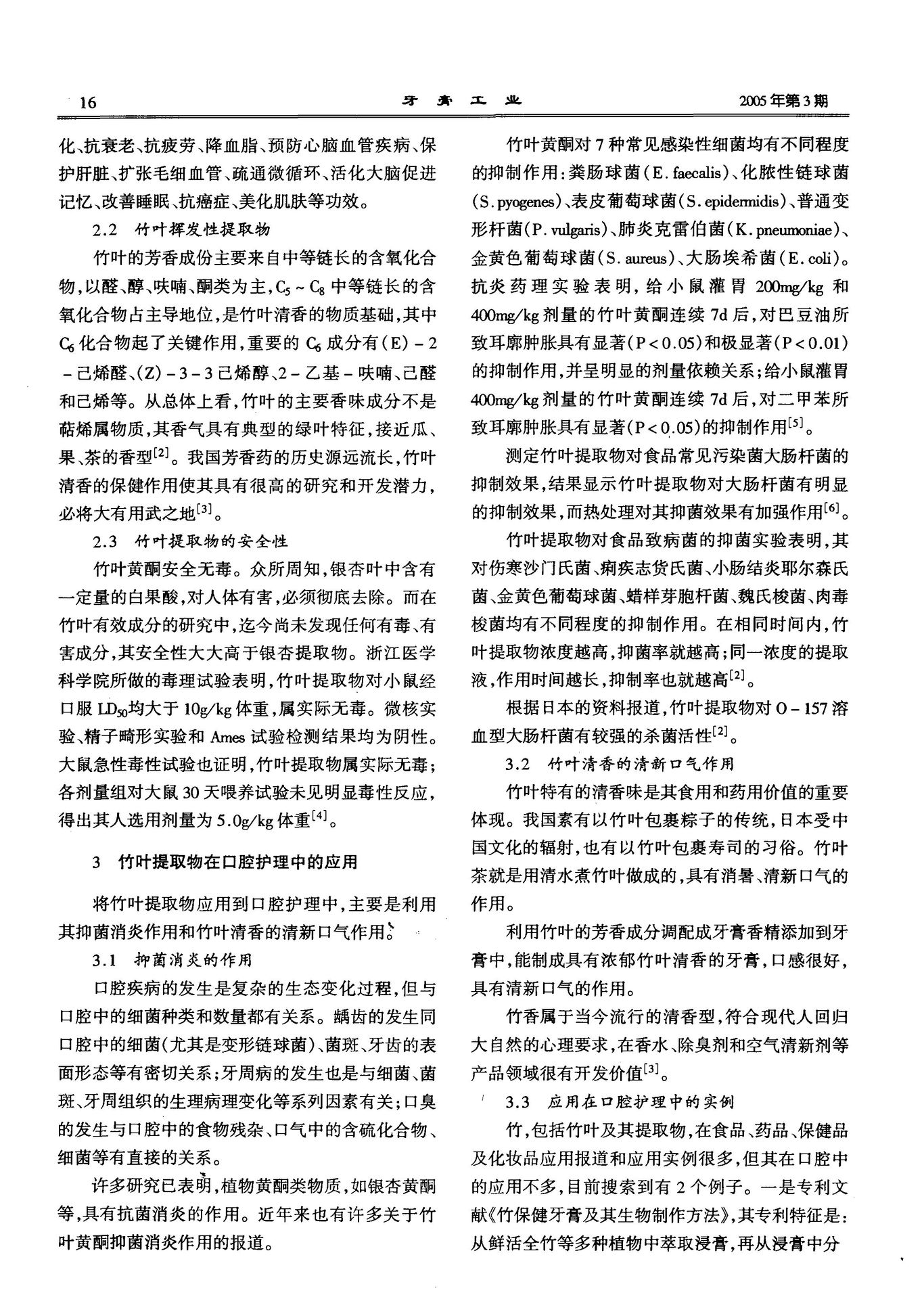 竹葉提取物在口腔護理領域中將會有更大的應用價值,其抗菌消炎作用和清新竹香在防治口腔疾病和口腔保健方面將會發(fā)揮更大的作用。