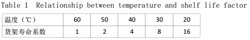 表1 溫度與貨架壽命系數(shù)關(guān)系